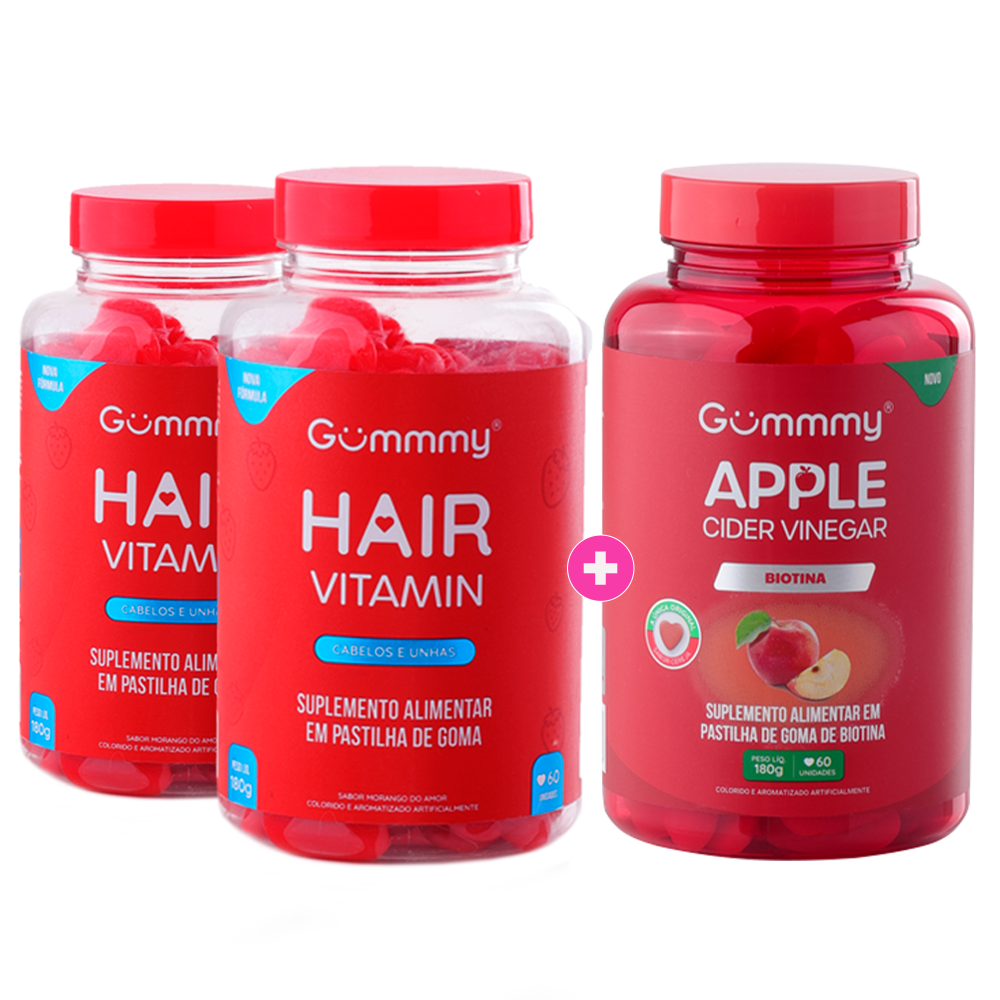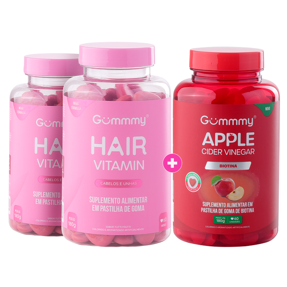 A combinação perfeita de dois produtos inovadores destinados a promover sua saúde e beleza de dentro para fora. Este kit exclusivo inclui o Apple Cider Vinegar e o Gummy Hair, cada um com fórmulas poderosas que trabalham em harmonia para oferecer resultados surpreendentes. Gummy® A Original